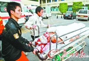 一名伤势严重的伤者被送往医院抢救。图/记者陈安