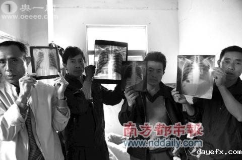 风钻工出示各自肺部的X光片。 深城记者 高贵彬 摄