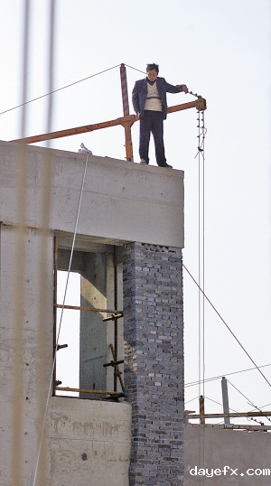 对面一栋20层高在建的楼房,在房顶往下看只感到一阵眩晕。记者看到上演“跳楼秀”的男子一个人站在21楼楼顶的平台上,背靠着十字形状的铁架子在寒风中冻得瑟瑟发抖,他不时俯身观察下面匆匆赶到的施工人员,但始终没有从楼顶下来的意思。