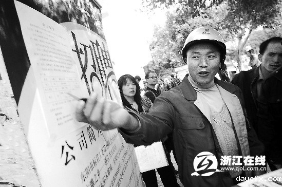 东阳市标君工艺品有限公司日前在广西广南县城长途车站树起招工牌招收工人。本报记者徐彦摄