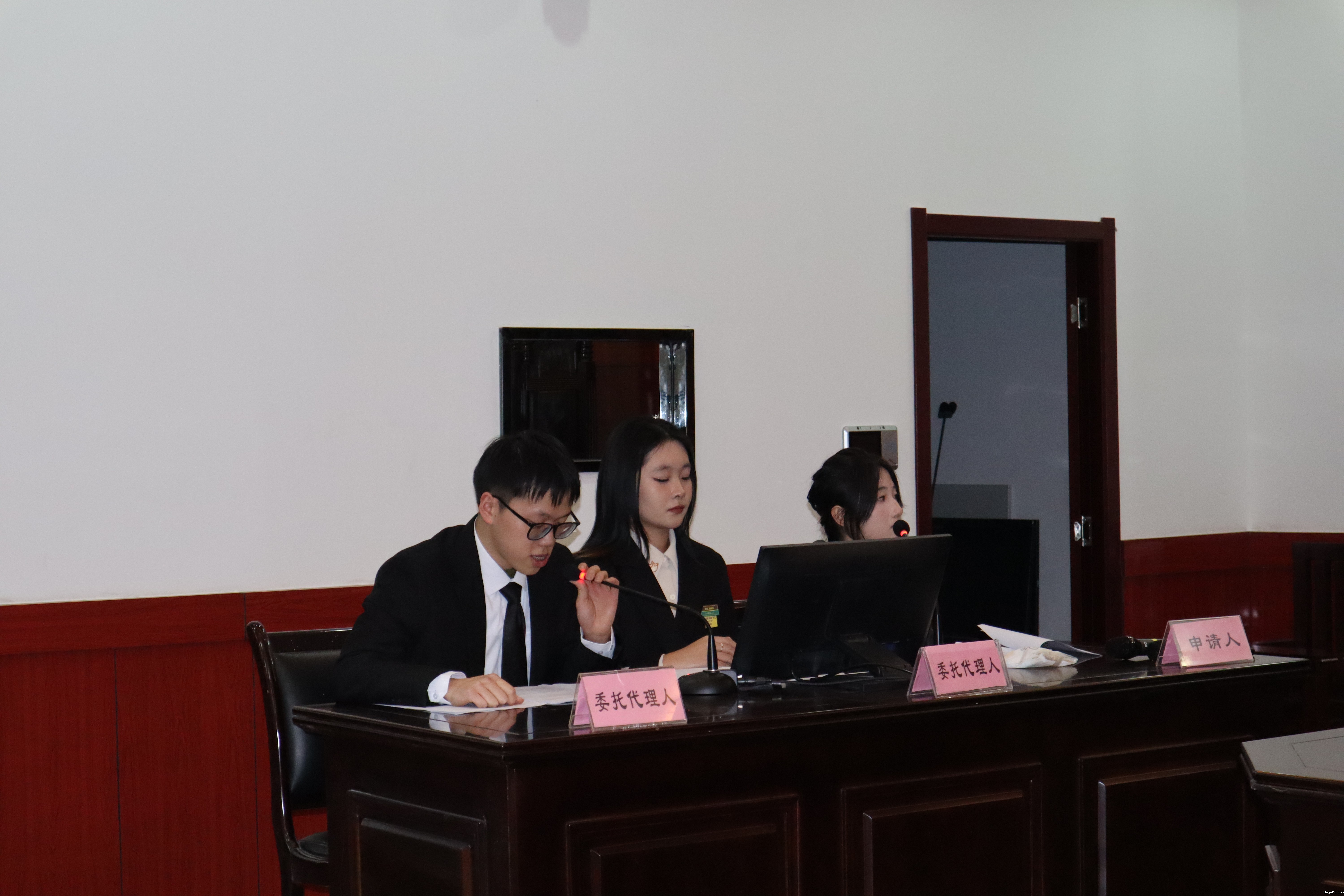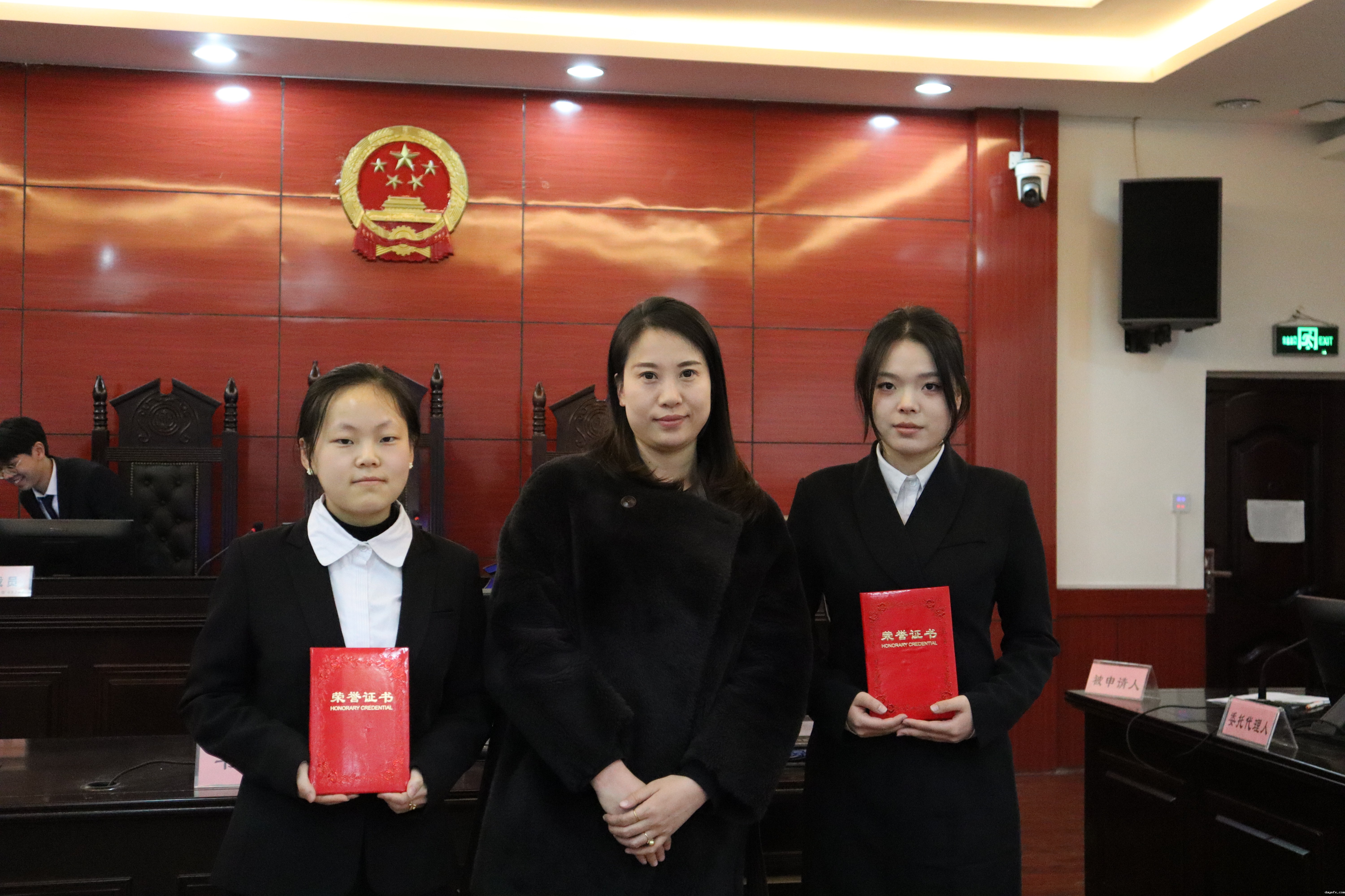 经评委、嘉宾集体评议,王子晴、郝格格两位学员荣获此次劳动模拟仲裁“最佳风采”奖,由王磊老师为获奖学员颁奖并合影留念。