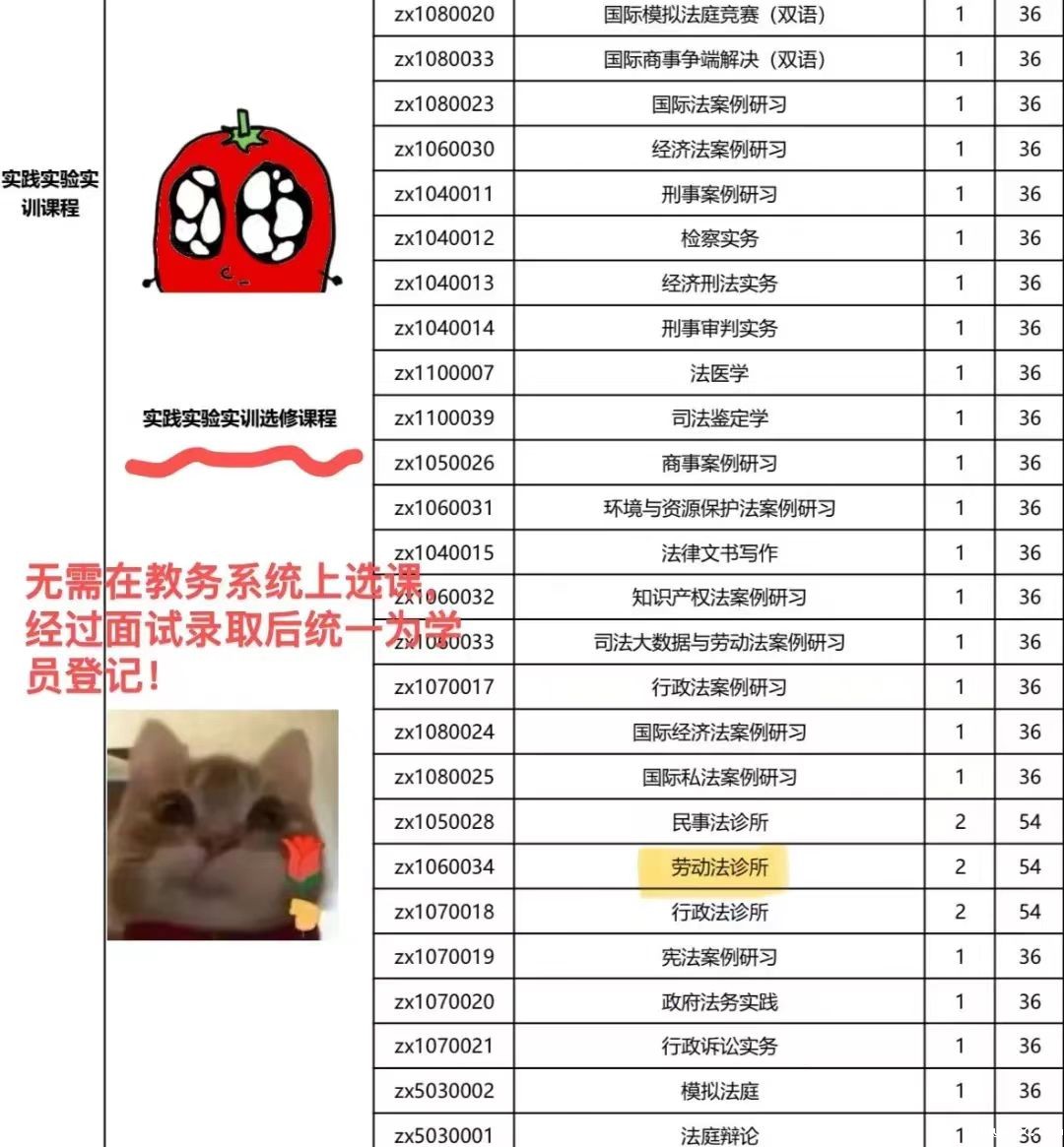 A:本期课程面向这些同学招新:①法学专业2022级、2023级本科生;②劳动与社会保障专业2022级本科生;③人力资源与社会资源管理专业2022级本科生。