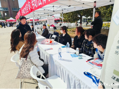 上午9时,招聘会现场已经人头攒动,毕业生们手持简历穿梭于各展位间,寻找心仪的就业岗位。学员们提前精心准备了易拉宝、宣传页等普法宣传材料,同时针对求职者关心的法律问题展开一对一服务。