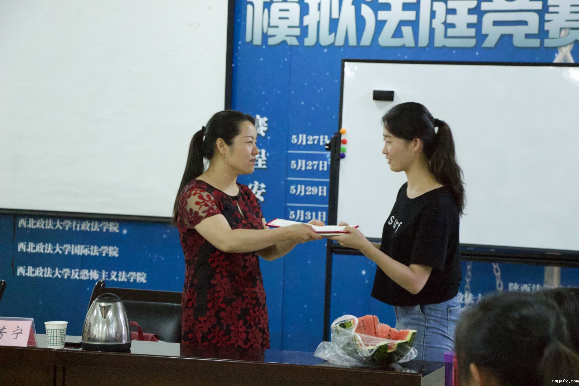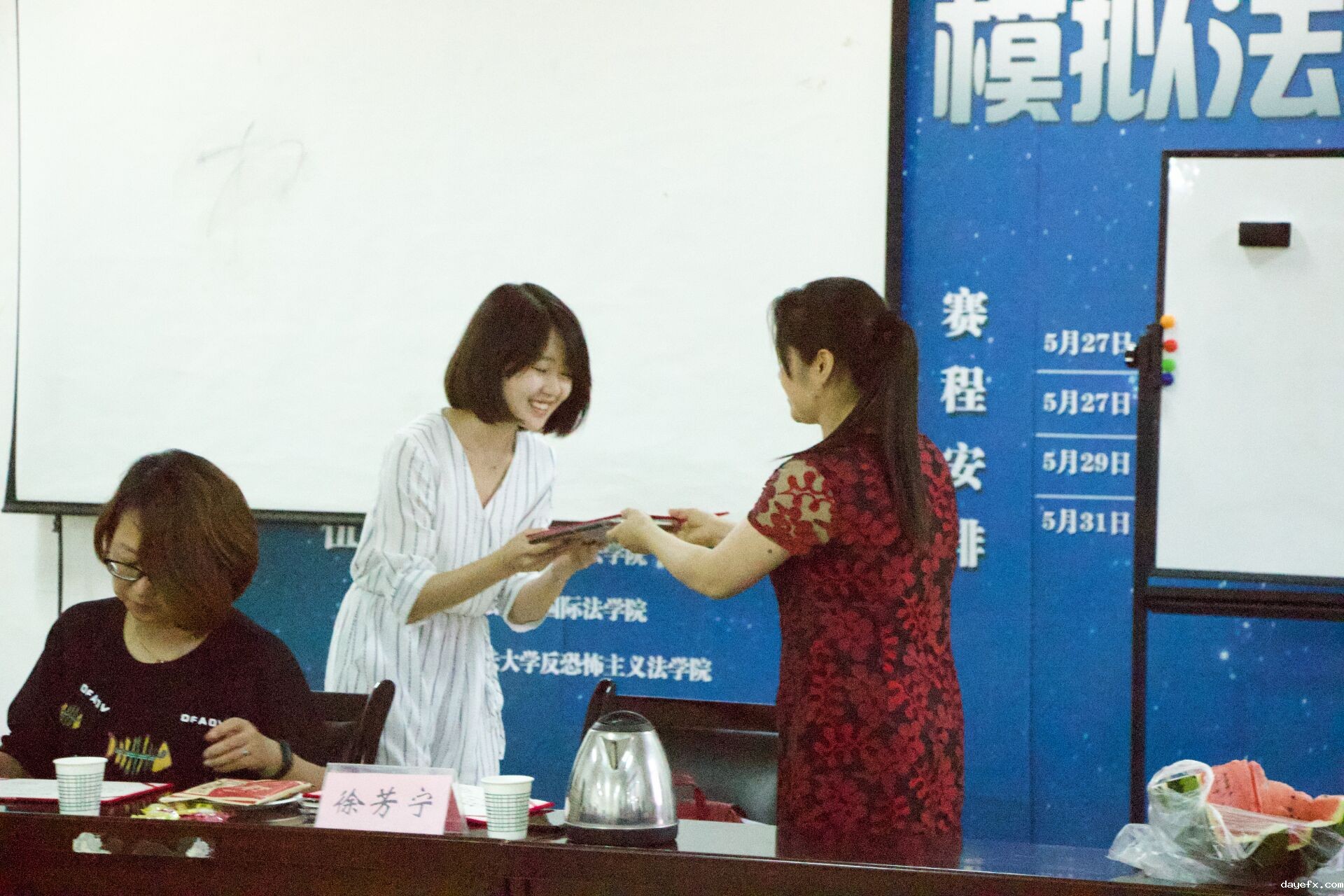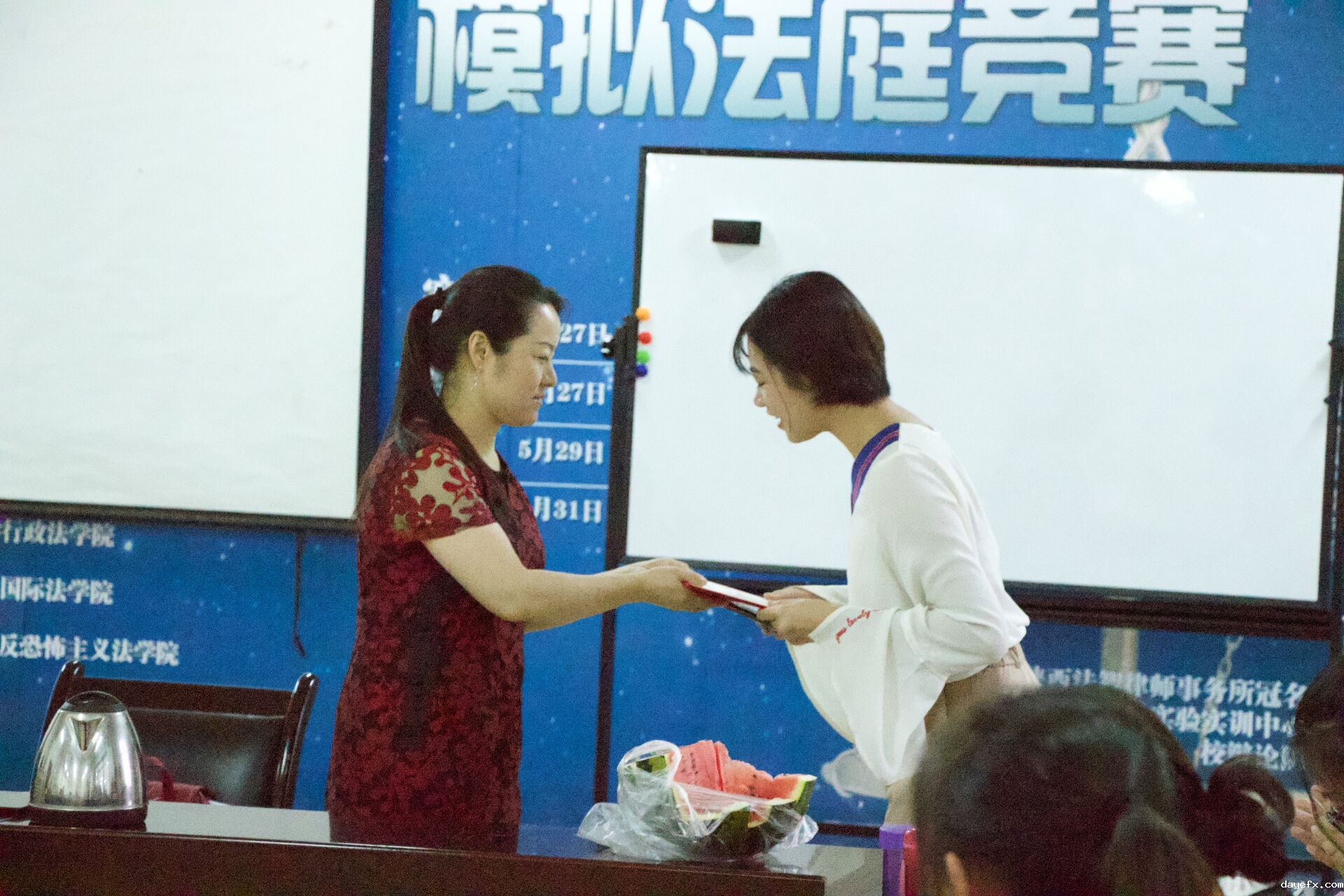 2018年6月20日19时30分,betway在线官方网址第二十一期结业典礼顺利举办。我校劳保法教研室陈静媛老师、徐芳宁老师莅临本次活动。
