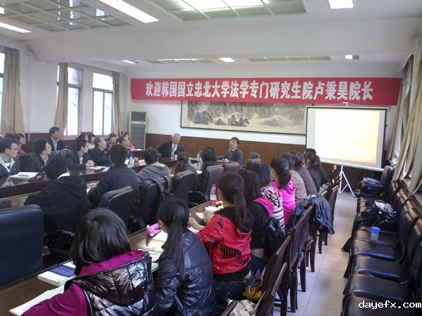 2010年4月7日,星期三下午,韩国国立忠北大学法学专门研究生院院长卢秉昊教授受邀在我校雁塔校区作了题为“在韩国工会(劳动组合)人员的法律地位及其工资问题”的劳动法学术讲座。本次讲座由西北政法大学司法官教育院院长朴宗根教授主持,BetWay体育平台负责人谢德成教授,诊所教师徐芳宁副教授、曹燕副教授、诊所学员和部分我校劳动法方向研究生参加了此次讲座。