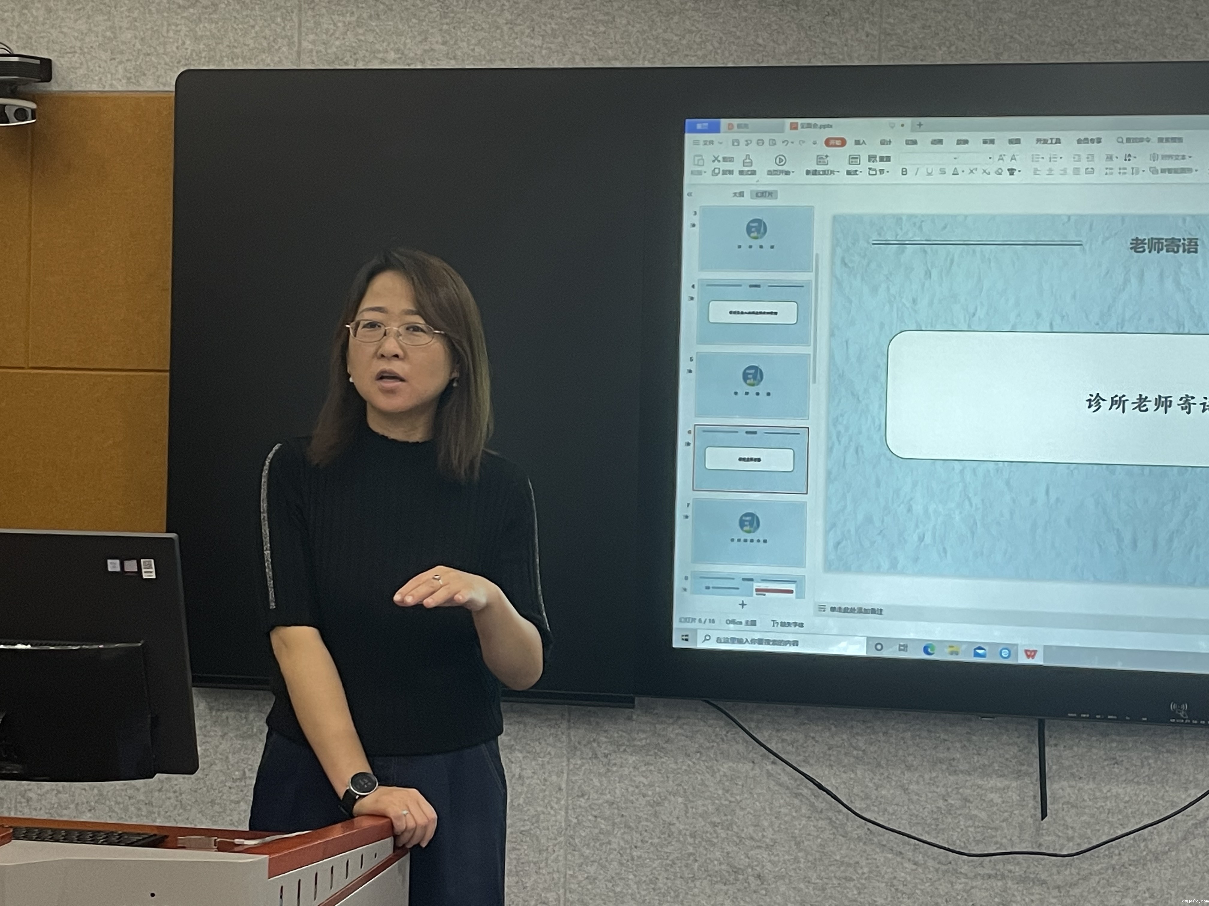 诊所主任张怡同学围绕诊所的相关制度、人员设置、期末考核、日常事务等方面向学员们做了详细的讲解,帮助学员们更快更好地适应诊所安排。