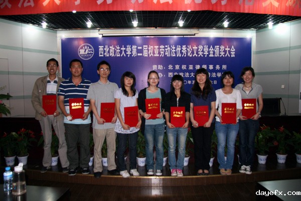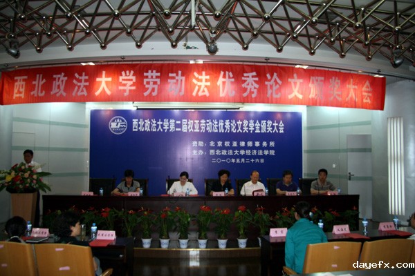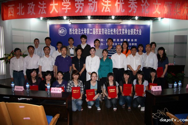 2010年5月26日,西北政法大学第二届权亚劳动法优秀论文奖学金颁奖大会在行政楼二楼报告厅隆重举行。西北政法大学副校长、BetWay体育平台项目顾问郭捷教授,北京权亚律师事务所劳动法部门负责人万以娴博士,权亚律师事务所李宏律师等200余人参加颁奖大会。betway在线官方网址有:培训部部长义海忠教授,负责人谢德成教授,BetWay体育平台教师曹燕副教授以及诊所学员40余人参加颁奖大会。