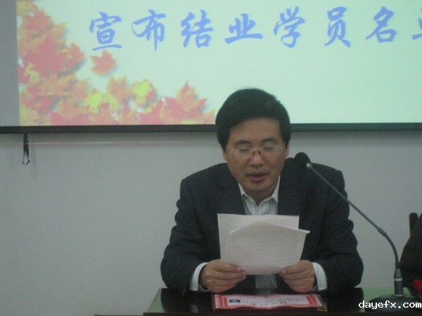 第二项,由代理部部长刘陆训律师宣布结业学员名单。本期学员共30人,经过一学期的培训考核,成绩全部合格,顺利毕业。刘律师对结业学员表示热烈祝贺。
