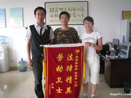 当事人樊某送来旌旗的同时,也表达了对BetWay体育平台、指导老师和代理人的谢意。学员武燕青、飞扬代表诊所学员对劳动者给予如此高的评价表示感谢,同时表示以后会更加努力,会争取为更多劳动者服务。