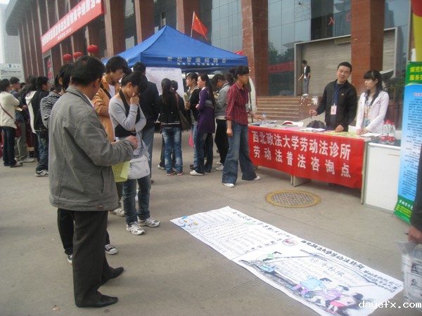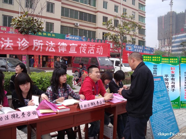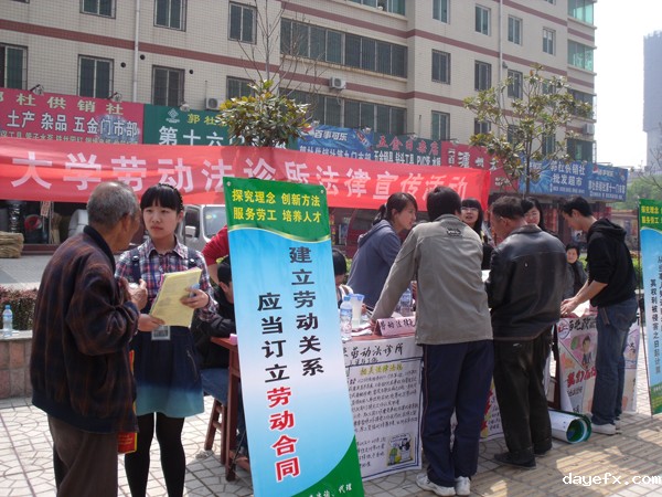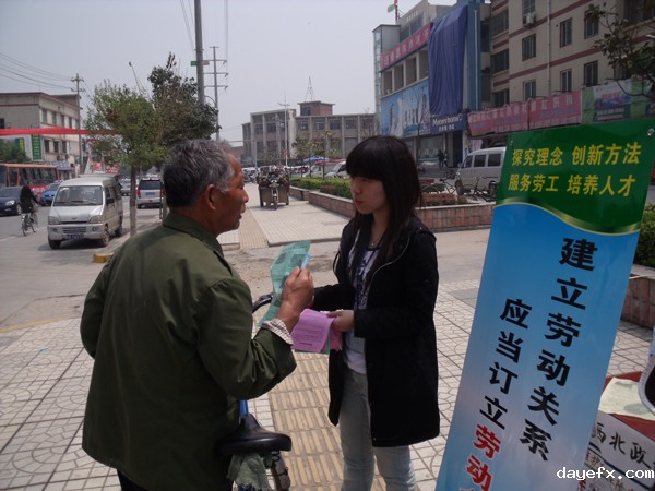 到达目的地之后,学员们迅速地布置好场地,九点整普法活动在三个地点统一开始。由于普法地点都位于劳动者密集区,因此很快就有劳动者前来咨询。学员们一部分留在普法点为前来咨询的劳动者答疑解惑;另一部分则走上街头,向群众发放劳动法律知识宣传单、诊所名片,并向劳动者讲解生活中应注意的一些法律常识。他们耐心的听着劳动者的陈述,用自己所学的知识向劳动者们提供力所能及的帮助。虽然天气很热,不停的解说和跑动更是让学员们满头大汗,但每一位学员都认真的履行着自己的职责,将普法工作落到了实处。