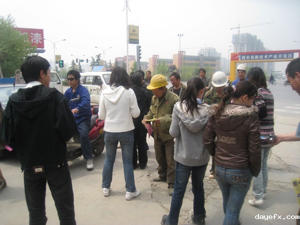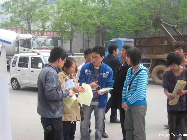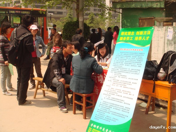 早上八点,各组成员在学校东门口整装待发。诊所办公室主任认真强调了相关事宜及注意事项后,带领陕西省人才市场小组先行出发。其他两组也在小组负责人的带领下,备齐宣传资料、诊所名片和横幅等后出发。